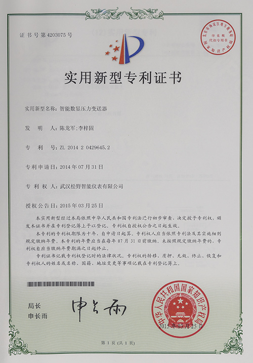 智能數(shù)顯壓力變送器實用新型專利