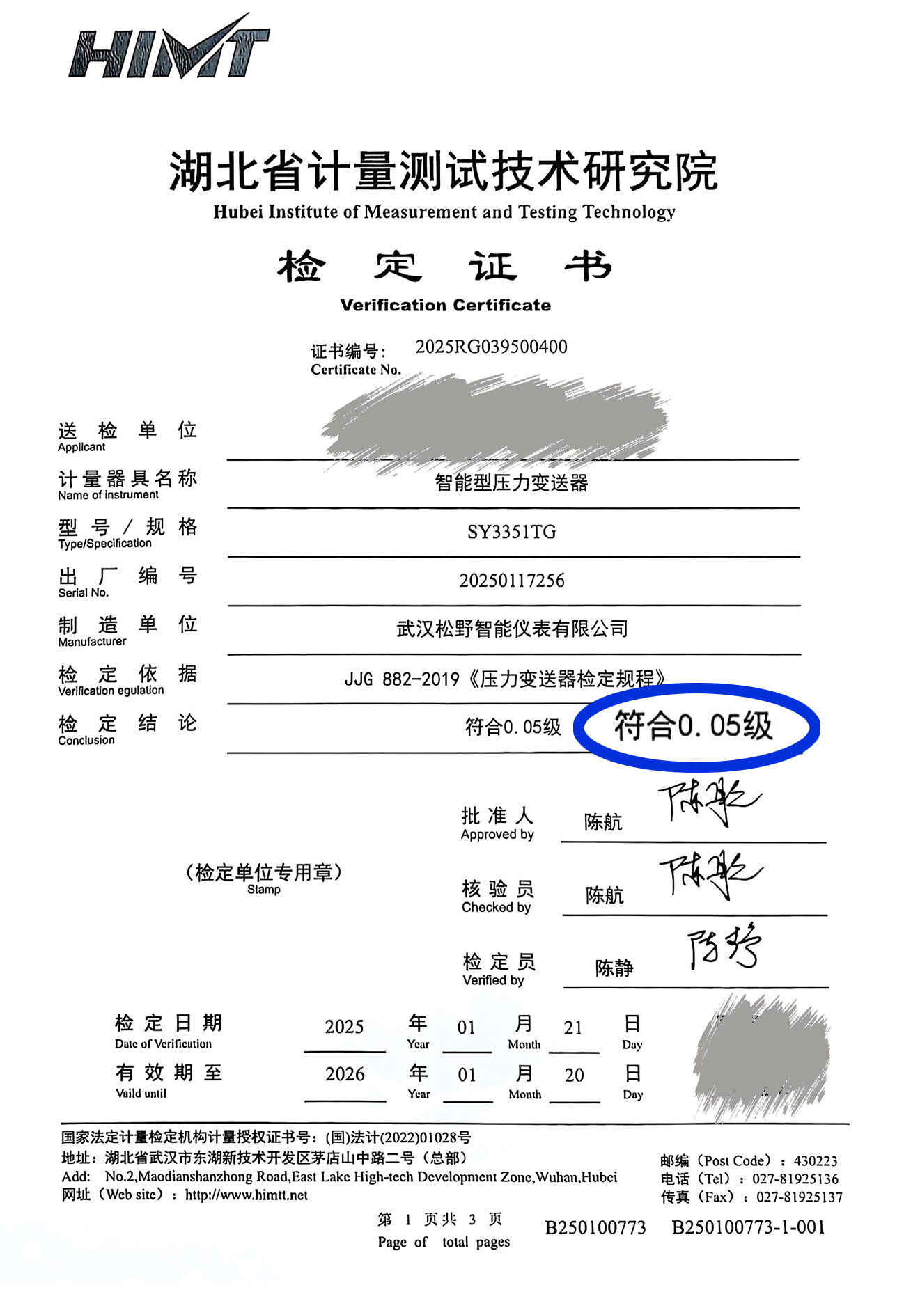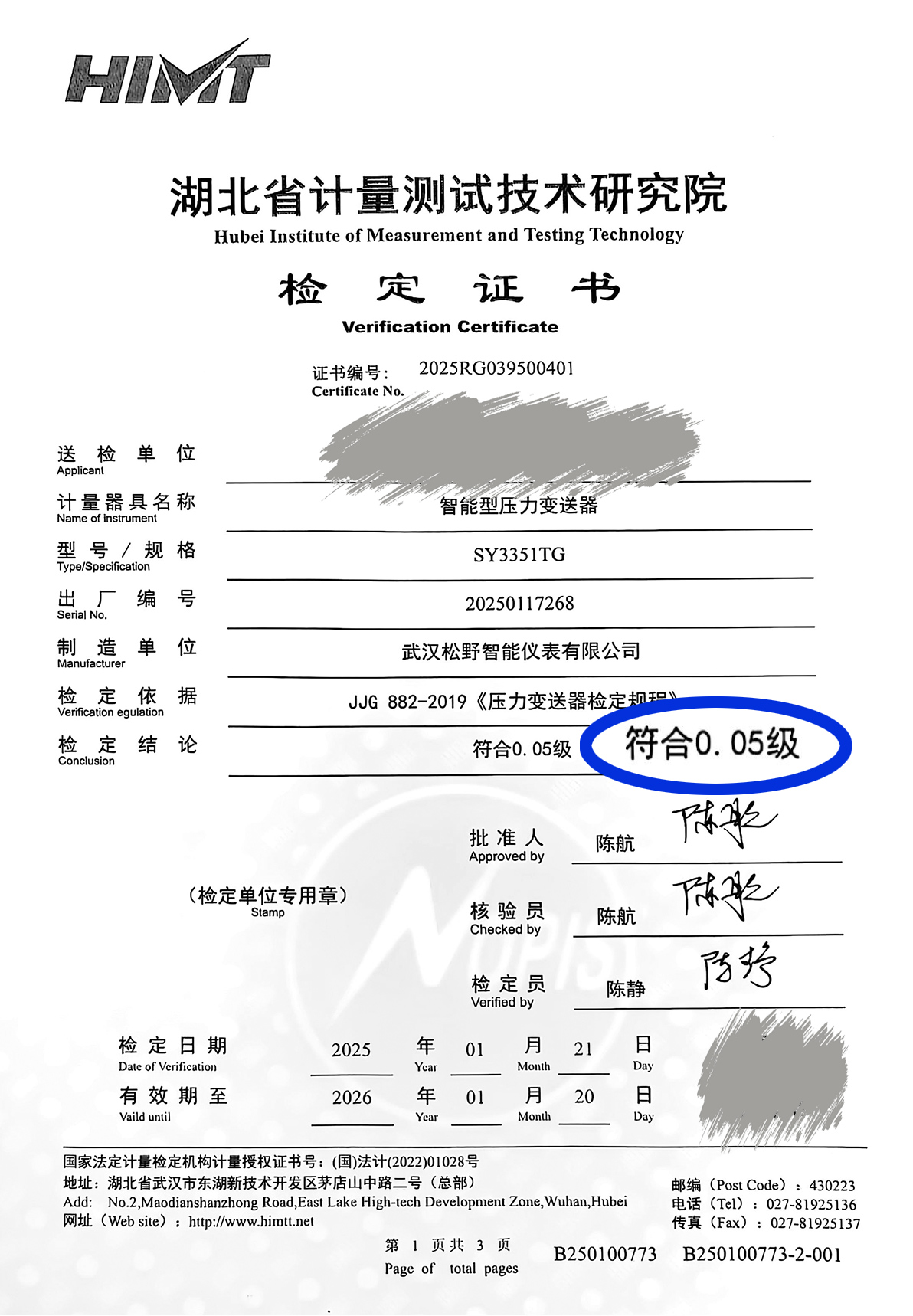 新年伊始,武漢松野智能儀表迎來技術(shù)新飛躍!我司自主研發(fā)的智能型壓力變送器,精度(準(zhǔn)確度)可以達到0.05級(0.05%FS),并經(jīng)過湖北省計量測試研究院的嚴(yán)格測試,且測量回差等級遠超此標(biāo)準(zhǔn),這是繼0.1級高精度壓力變送器之后的又一次技術(shù)突破!此次成就,是對我們持續(xù)創(chuàng)新、精益求精的最好證明。在新的一年里,武漢松野將繼續(xù)秉持匠心精神,致力于技術(shù)革新,為客戶提供更優(yōu)質(zhì)的產(chǎn)品與服務(wù),共創(chuàng)輝煌未來!