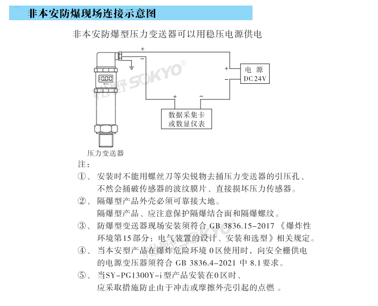 7.防爆型變送器現(xiàn)場安裝須符合GB3836.15-2000《爆炸性氣體環(huán)境電氣設備第15部分: