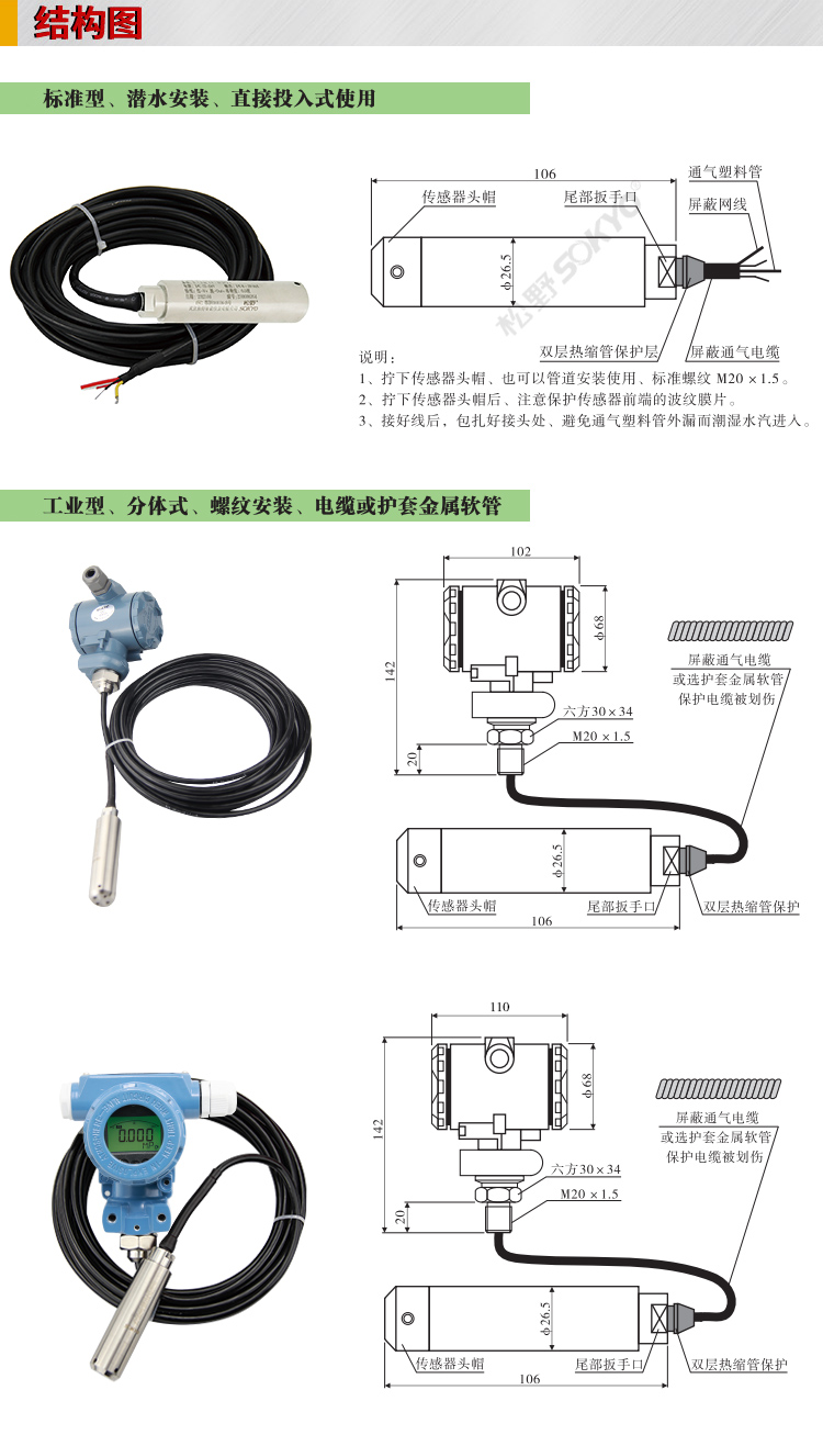 優(yōu)質傳感元件,武漢松野是專業(yè)生產投入式液位計,液位變送器,... [詳情]