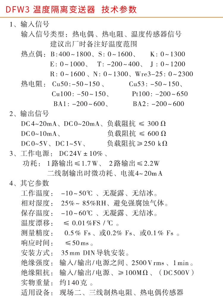 RS485溫度變送器,DFW導(dǎo)軌式溫度變送器