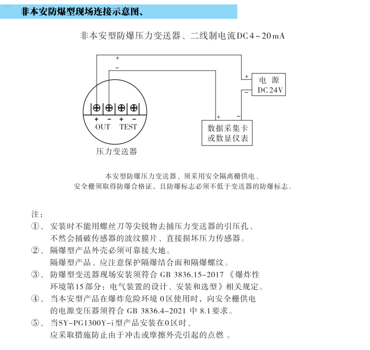 7.防爆型變送器現(xiàn)場安裝須符合GB3836.15-2000《爆炸性氣體環(huán)境電氣設(shè)備第15部分: