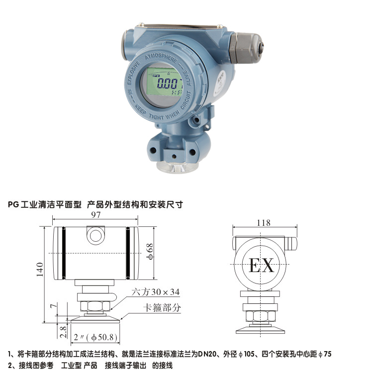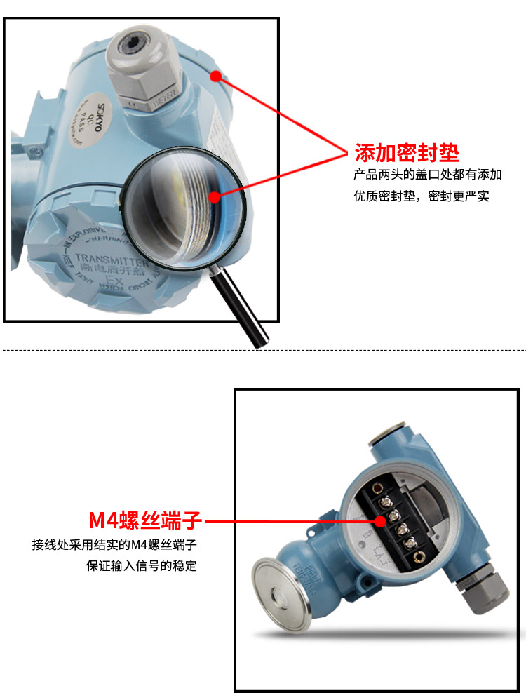 3、確定螺紋接口:常用壓力接口為M20X1.5,如果在特殊場(chǎng)合下使用應(yīng)考慮防爆以及防護(hù)等級(jí)。