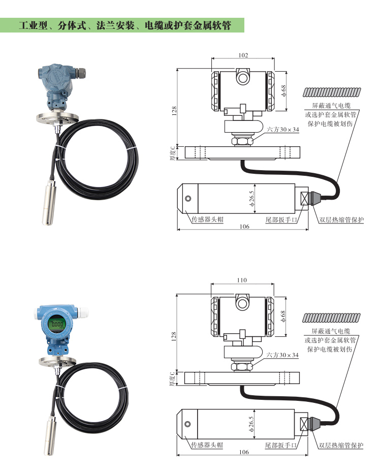 3、確定安裝方式,液位變送器采用螺紋或者法蘭安裝,接線采用端子接線式
